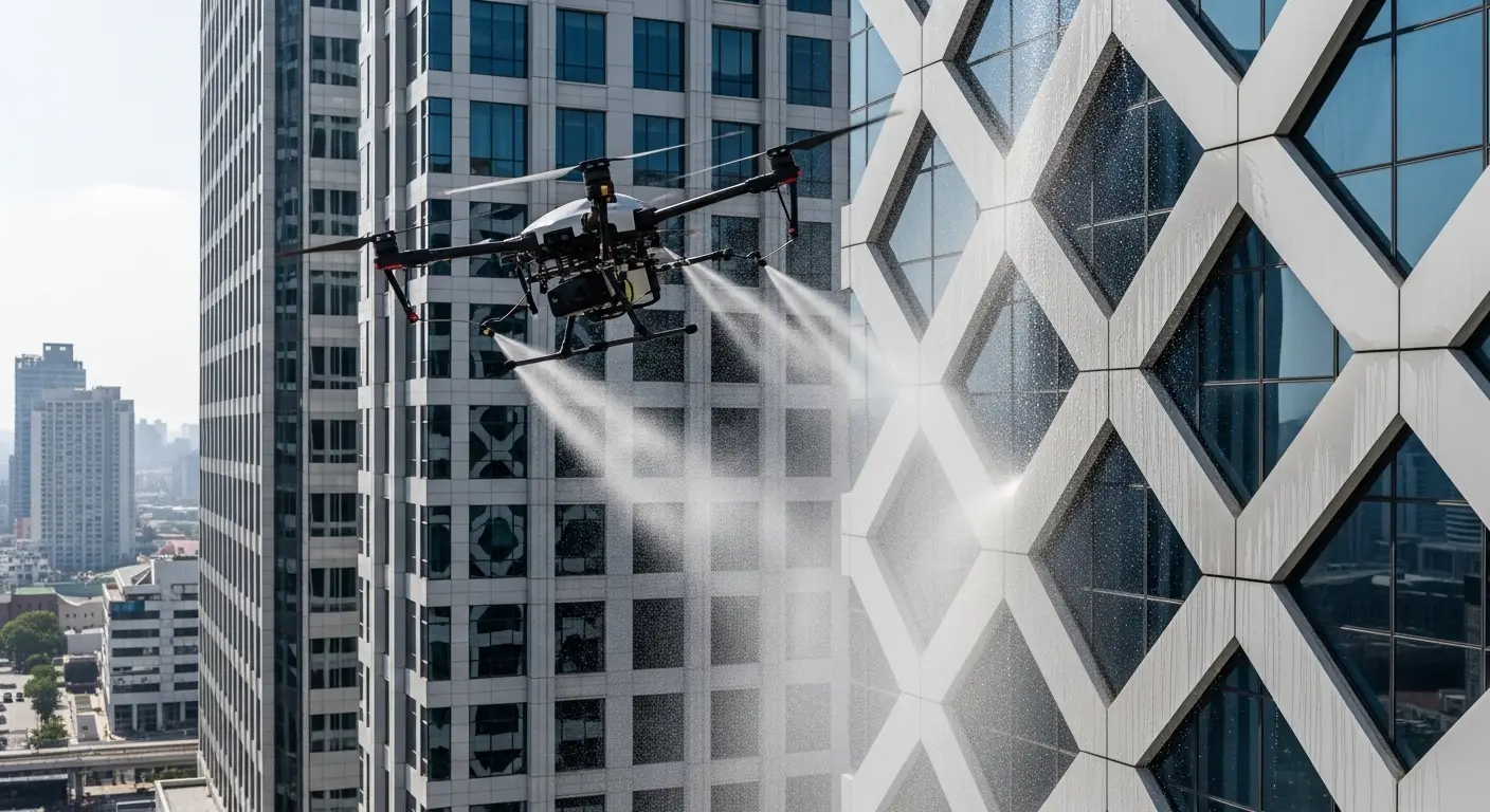 Drone cleaning uses modern aerial technology to deliver precise and efficient cleaning solutions for hard-to-reach areas.